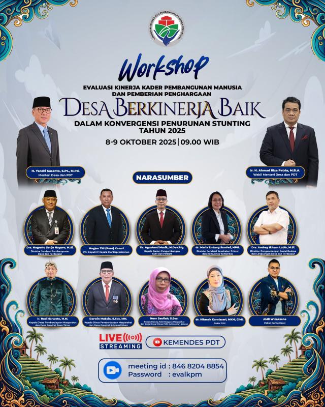 Kegiatan yang berlangsung pada 8–9 Oktober 2025 pukul 09.00 WIB ini dilaksanakan secara daring melalui Zoom Meeting dan disiarkan langsung melalui kanal YouTube Kemendesa PDTT.