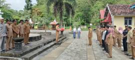 Apel berlangsung dengan tertib dan diikuti oleh seluruh pamong Kalurahan Tepus di halaman balai kalurahan.