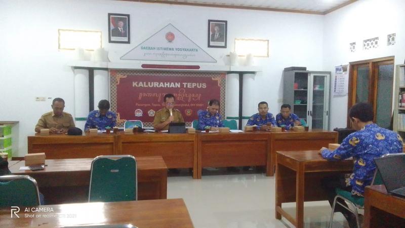 Rakor Rutin Pamong Kalurahan Tepus Bahas Kewaspadaan Musim Hujan dan Ketelitian Data Bantuan