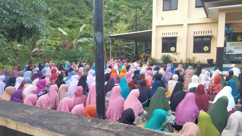 Suasana pengajian terasa hangat dan penuh kekhusyukan. Para jamaah mengikuti rangkaian acara dengan tertib, mulai dari pembukaan, penyampaian himbauan kamtibmas di bulan suci Ramadhan dan Idul Fitri, hingga penyampaian tausiyah.