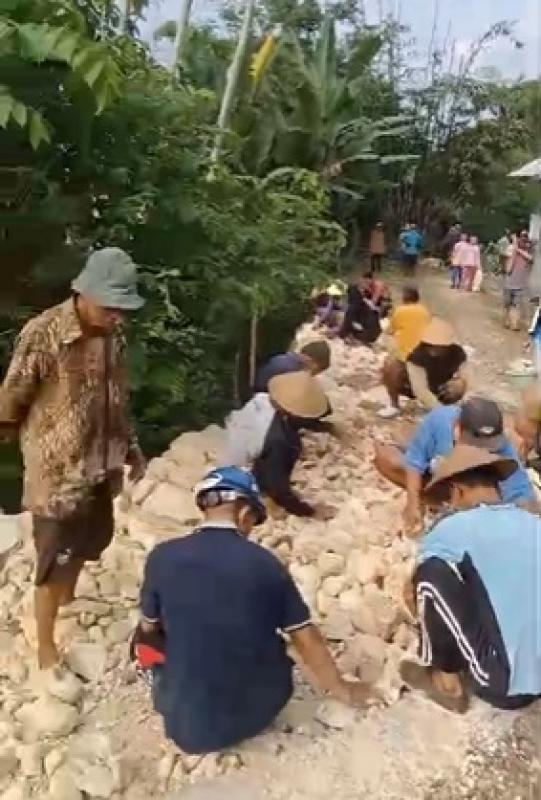 Menjelang pelaksanaan pekerjaan, warga tidak tinggal diam. Mereka secara sukarela turun tangan untuk membenahi talud di sepanjang jalan guna memperkuat struktur penahan tanah, sekaligus melakukan pengurugan agar permukaan jalan menjadi lebih padat dan siap untuk proses pengecoran.
