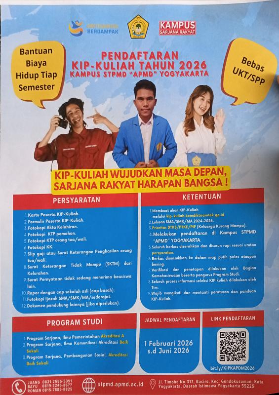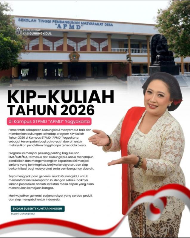 Tepus (desatepus.gunungkidulkab.go.id) - Pemerintah Kabupaten Gunungkidul terus menunjukkan komitmennya dalam meningkatkan kualitas sumber daya manusia melalui dukungan terhadap program KIP-Kuliah Tahun 2026 di Kampus STPMD “APMD” Yogyakarta.