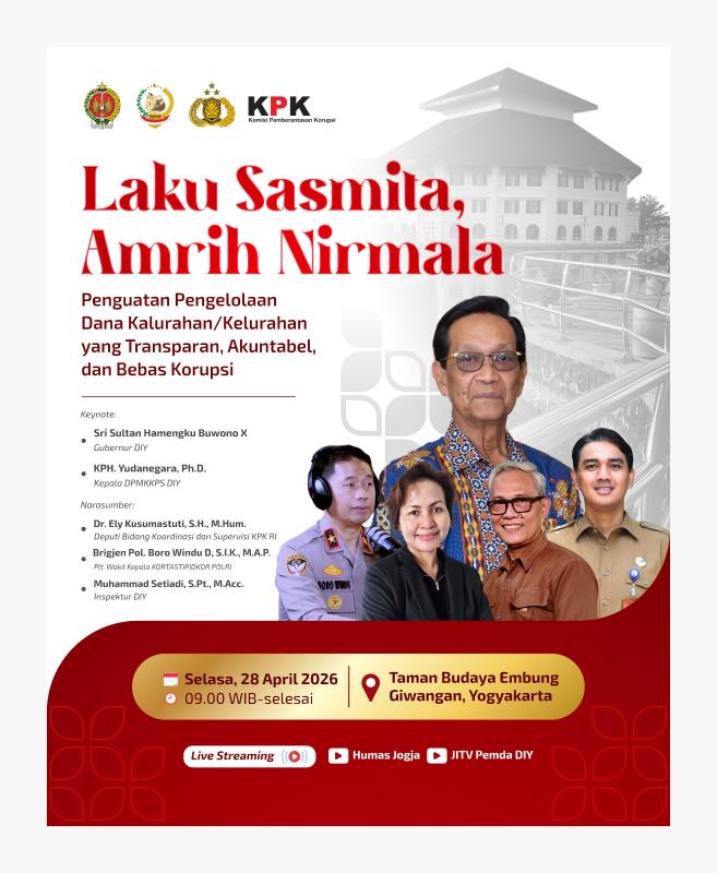 Acara tersebut mengusung tema “Penguatan Pengelolaan Dana Kalurahan yang Transparan, Akuntabel, dan Bebas Korupsi”, sebagai upaya meningkatkan kualitas tata kelola keuangan di tingkat kalurahan dan kelurahan.